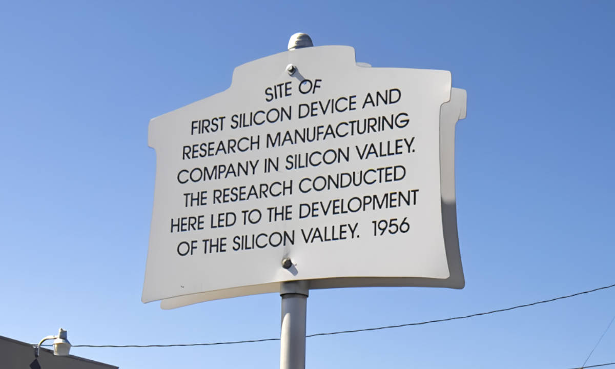 Placa conmemorativa en el emplazamiento del Shockley Semiconductor Laboratory. Imagen: Dicklyon