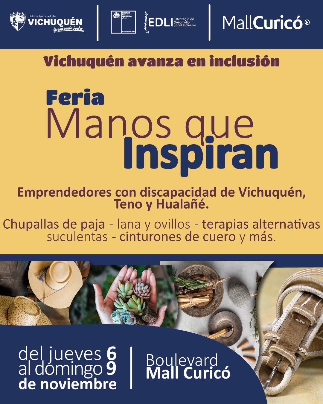 La Feria Manos que Inspiran estará abierta al público en el Boulevard del Mall Curicó durante todo el fin de semana.